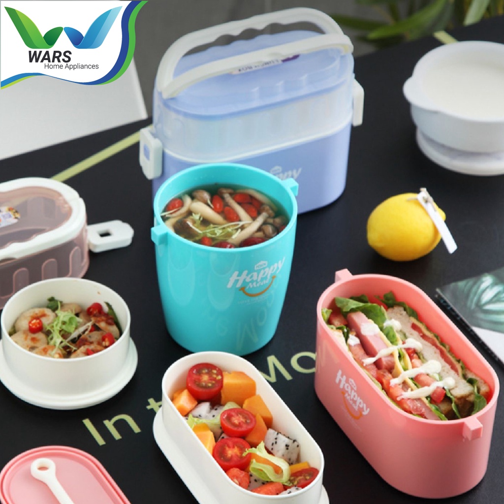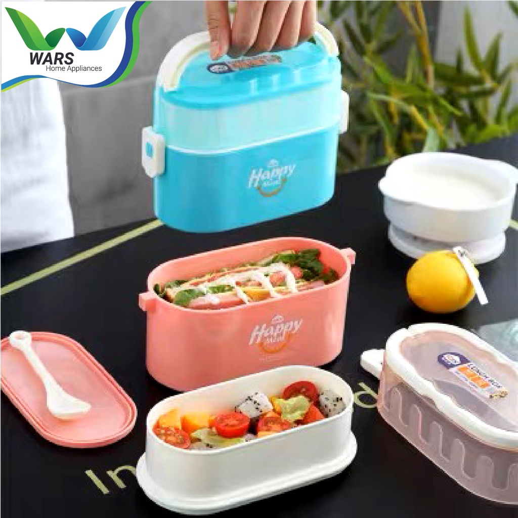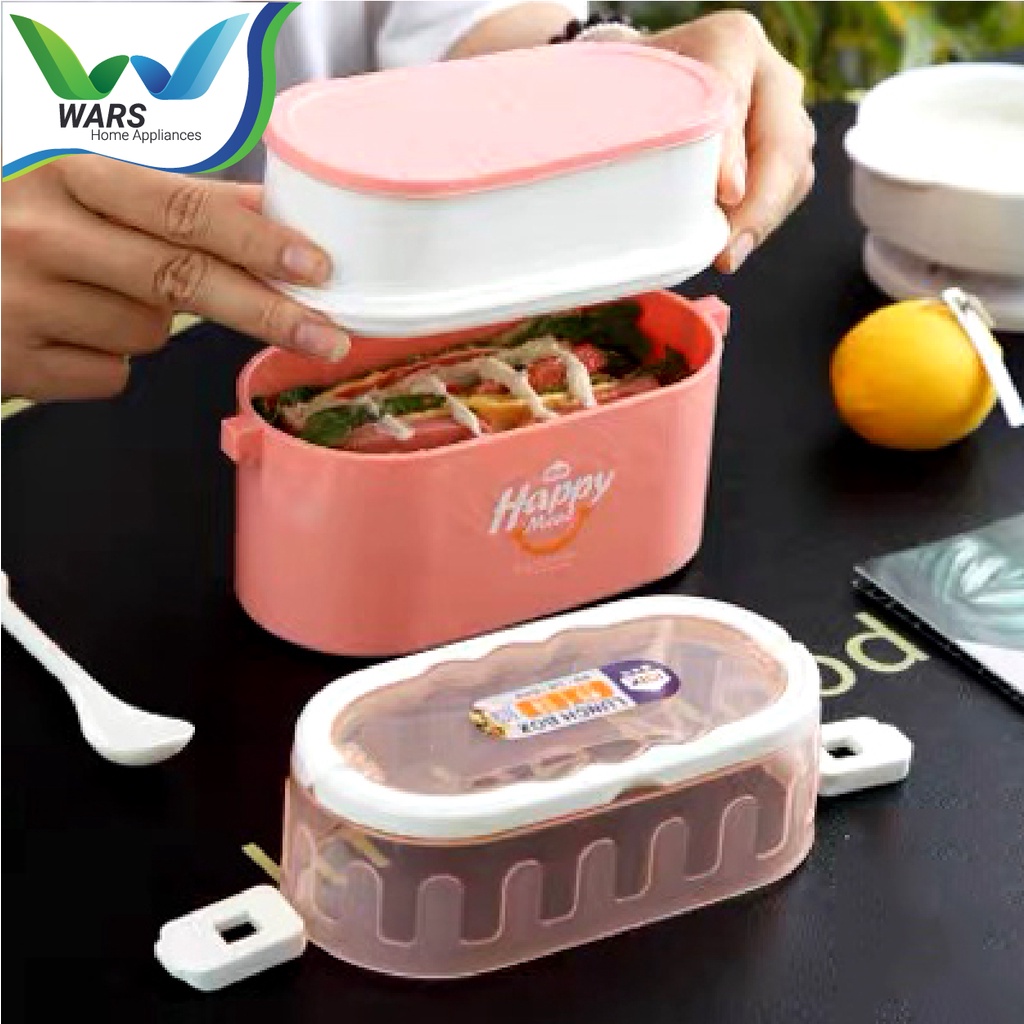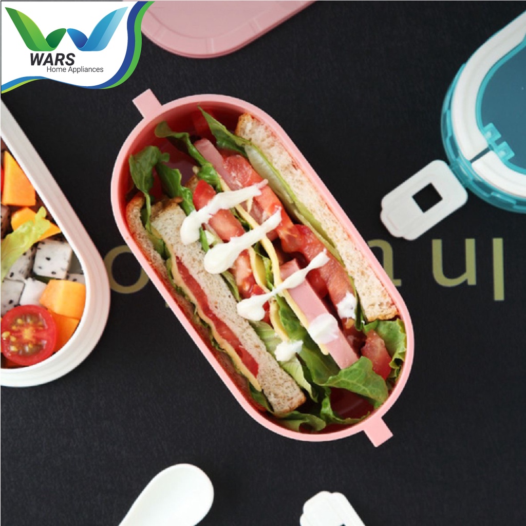 Tempat bekal makanan yang sangat unik karena memiliki 2 susun tempat sehingga dapat mudah memisahkan lauk dan nasi, pengaman anti bocor yang baik karena disetiap susunnya diberikan tutup dan segel dibagian luar sehingga terjamin tidak akan mudah bocor, terdapat sendok dalam paket pembelian.