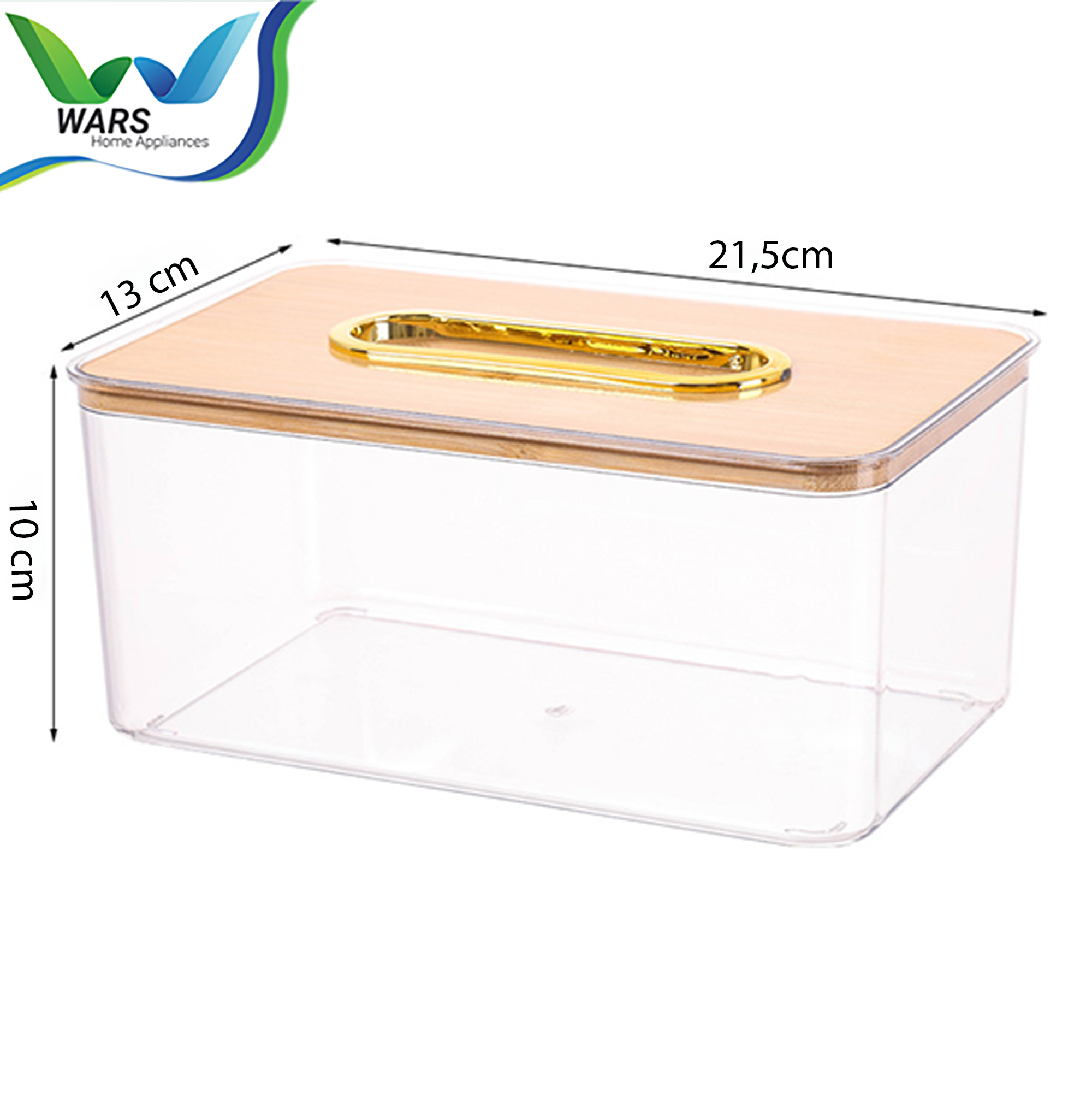 Box Kotak Wadah Tempat Tissue Transparan dengan Tutup Kayu List Chrome Premium adalah perpaduan elegan antara fungsionalitas dan estetika. Dengan bodi transparan yang memudahkan Anda melihat isi tisu, serta tutup kayu dengan aksen chrome yang memberikan sentuhan mewah, box ini merupakan pilihan yang sempurna untuk menyimpan tisu dengan gaya. Desainnya yang modern dan premium menjadikannya cocok untuk berbagai dekorasi ruangan. Selain sebagai wadah praktis untuk tisu, box ini juga merupakan tambahan dekoratif yang menonjol dengan sentuhan kesan premium dan keindahan yang tahan lama.