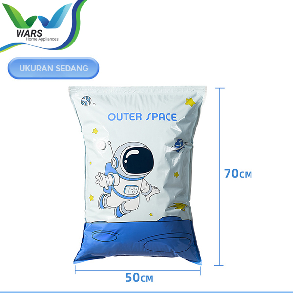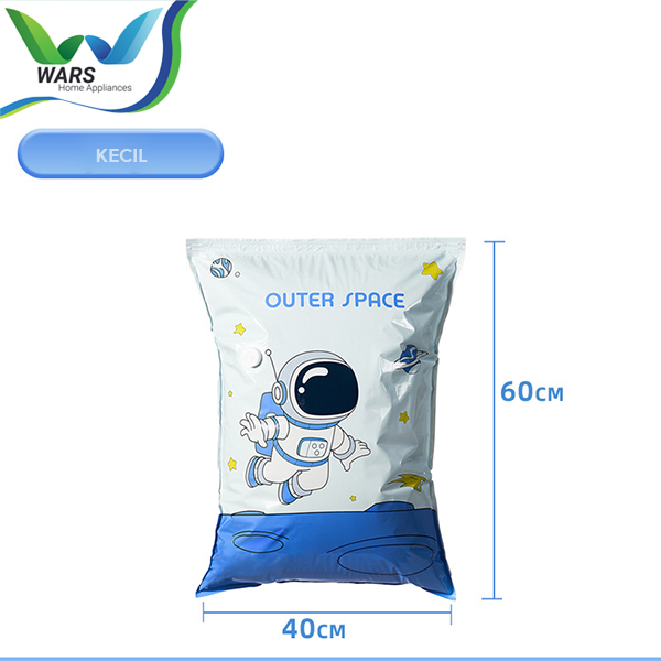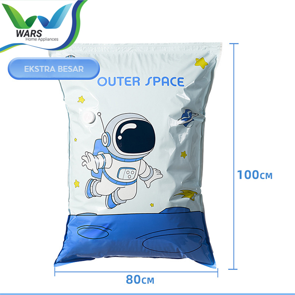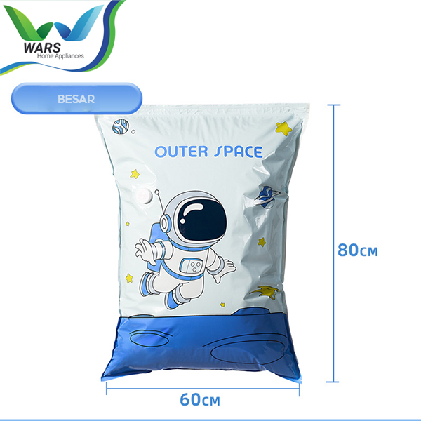 Plastic Bag Vacuum Motif Astronot adalah solusi cerdas untuk mengatur penyimpanan pakaian dan selimut Anda. Dengan gambar motif astronot yang menarik, tas ini tidak hanya praktis tetapi juga memberikan sentuhan visual yang menyenangkan pada ruang penyimpanan Anda. Dengan teknologi vakum, tas ini mampu mengompres pakaian dan selimut sehingga menghemat ruang penyimpanan hingga 80%. Dilengkapi dengan kedap udara, tas ini melindungi barang-barang Anda dari kelembaban, debu, dan serangga. Ideal untuk mengorganisir dan melindungi barang-barang Anda dengan gaya yang unik.